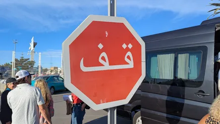Our private tour guide collected us from the port with an enthusiasm. As we left the port, I spotted something interesting: Morocco’s traffic stop signs read in Arabic script, rather than using the English “STOP” typical in so many other places, which I thought was pretty cool.