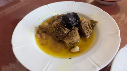 The main course consisted of chicken skewers with couscous, alongside beef stew and chicken stew (likely from a tagine, the traditional conical cooking vessel that permeates Moroccan cuisine). However, the dishes lacked adequate seasoning. The meat was tender enough, but without sufficient salt to draw out the spices’ potential, the meal felt somewhat muted.